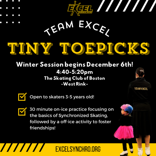 Team Excel’s Tiny Toepicks Winter Session kicks off December 6th, and we can’t wait to welcome our newest little stars to the ice!